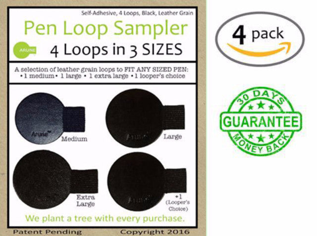This 4 Pack Includes: 1 Medium Black Pen Loop, 1 Large Black Pen Loop, 1 Extra Large Black Pen Loop, and a fourth black pen loop of sellers choice.